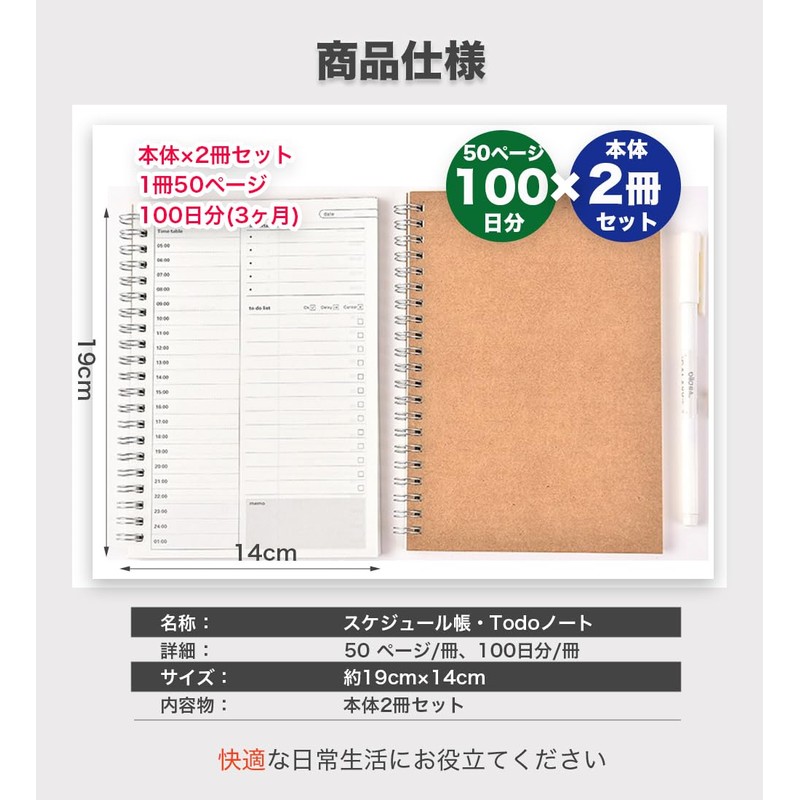 - Product Contents: Main Unit: Set of 2 (Details) 50 pages/book, 100 days / book. *Front and back per page. Size (approx.): 7.5 x 5.5 x 0.4 inches (19 x 14 x 1 cm)