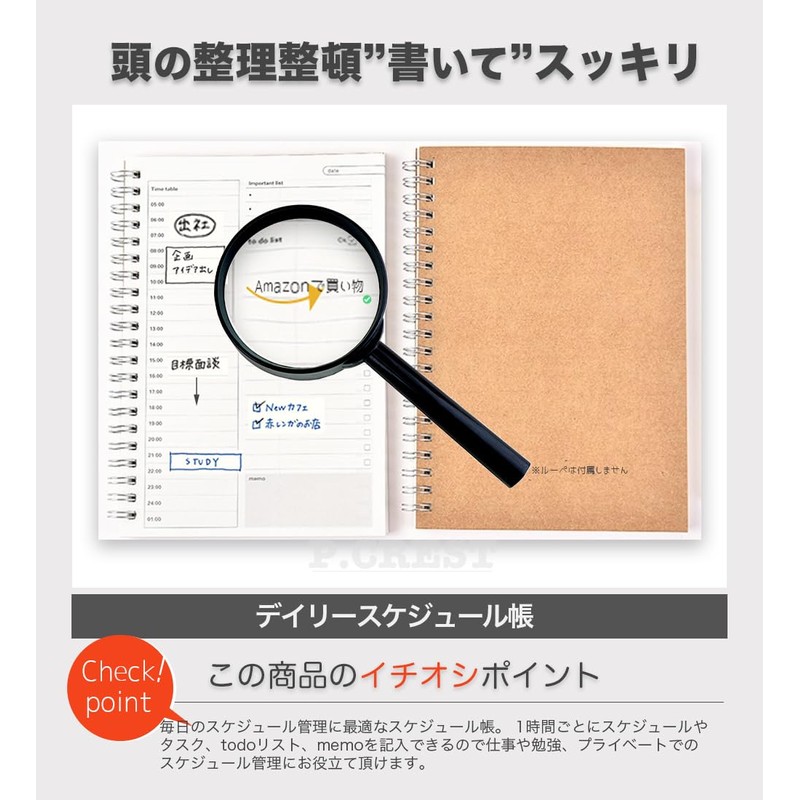 P.CREST Todo Notebook, Study Planner, Task Management, Planner, Daily Checklist, Do, B6, Set of 2, 6 Months