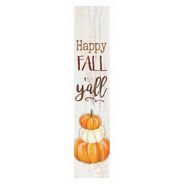 - Features sentiment that reads “Happy fall ya’ll”; Distressed finish and lovely pumpkin artwork paired with sentiment of hope and inspiration