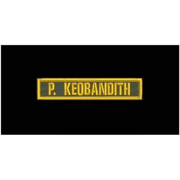 P. KEOBANDITHE MBROIDERY PATCH 5.25X1'' HOOK ON BACK GOLD ON RANGER GREEN