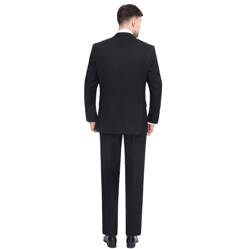 P&L Men's Two-Piece Classic Fit Office 2 Button Suit Jacket & Pleated Pants Set, Black, 42 Regular / 36 Waist
