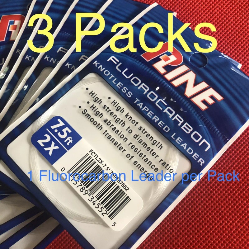 P-LINE Fluorocarbon Tapered Leader 7.5ft 2X 10lb (3-Pack) Fly Fishing Knotless