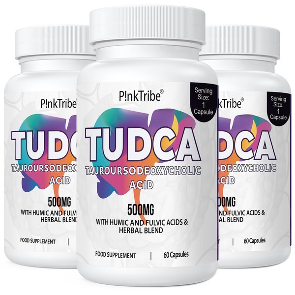 P!nkTribe TUDCA 500mg, Tauroursodeoxycholic Acid with Humic and Fulvic Acids, Beet Root and More, Tudca Bile Salt Supplement for Liver Health, Digestion, Detox and Repair (Pack of 3)