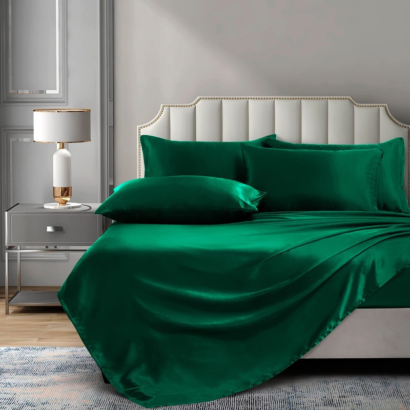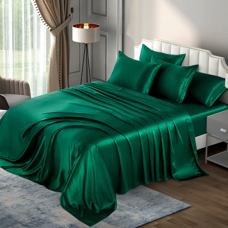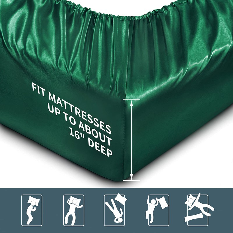 • TOP QUALITY CONSTRUCTION - Blackish Green Silky Satin Sheets is made of 100% Polyester (Satin Fabric), soft like as silk, smooth, breathable and sensitive skin-friendly. Polyester satin provided a beautiful glossy luster and heavenly soft texture, let you enjoy unparalleled comfort just like in a 5-star luxury hotel ! P Pothuiny satin sheet set will definitely surprise you and fall in love with it!