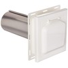 For dryers, bathroom vents, and range hoods. J-block nail flange included for use in new construction (can be discarded or recycled if application is not for new construction). Vent cap wide-mount faceplate is 6-3/4" W. x 7-3/8" H. and ideal when needing to cover a larger mounting area, either with new construction or replacement of existing vent cap. Exclusive dual door design keeps pests out, minimizes drafts and wind clap. Better airflow saves energy, and clothes dry faster. No screen to clog with lint. No flaps to break or clog. Tough UV-resistant plastic. Attractive low profile design. Includes 4" plastic vent cap and 4" x 12" aluminum tube. No. 8 stainless steel screws recommended (not included) for installation. Complies with 2009 International Mechanical Code (Section 504). Recyclable. The product is manufactured in United States.