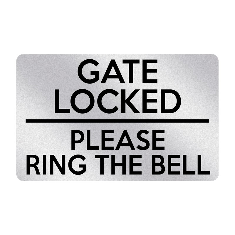 P129 GATE LOCKED Please Ring The Bell Door Garden Plastic PVC Plaque Sign Card (Metallic Silver)