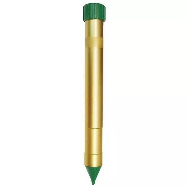 This state of the art device is the most advanced and powerful deterrent available against underground intruders. It works to deter moles, gophers, voles, shrews, pocket mice, ground squirrels and many other destructive burrowing rodents. The Molechaser's unique design utilizes a patented DC motor drive which generates powerful vibrations that, though harmless to humans and pets, are devastating to underground-dwelling rodents. Simply bury the Vibrasonic Molechaser flush in the ground and it will go to work to repel destructive underground critters within about a 13,500 sq. ft. area. That's up to 1/3 of an acre! Within 7-14 days of continuous use, the intruders will have moved out to a new home. Limited Lifetime Warranty!