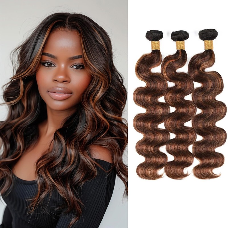 P4/30 Bundles Human Hair Highlight Body Wave Bundles 24 26 28 Inch Two Tone Chocolate and Brown Human Hair Bundles 300g