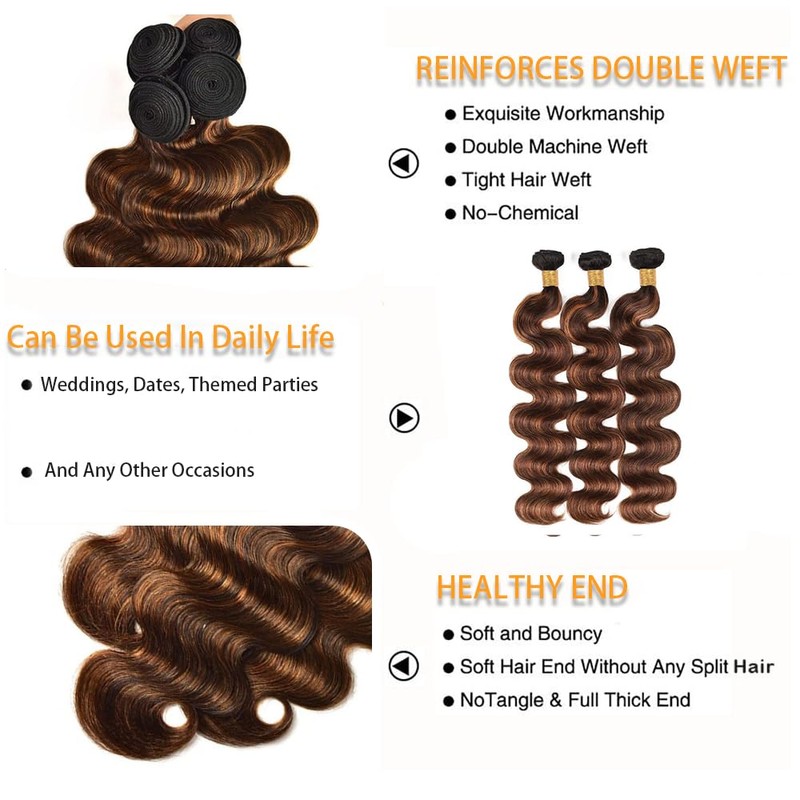 P4/30 Bundles Human Hair Highlight Body Wave Bundles 24 26 28 Inch Two Tone Chocolate and Brown Human Hair Bundles 300g