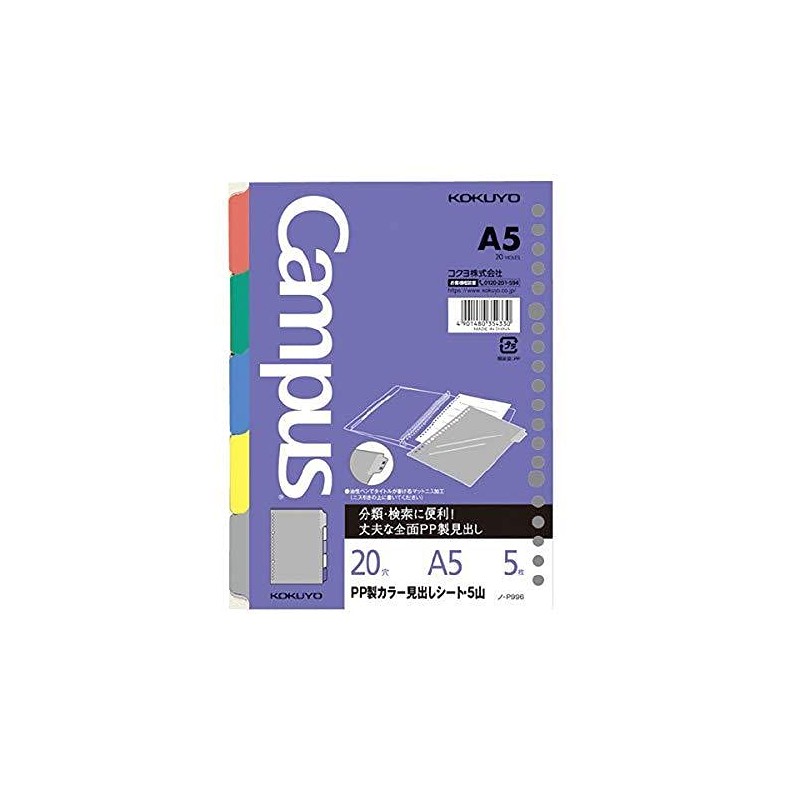 P996 PP Color Header Sheet for Loose Leaf A5 5 Slots 20 Holes 5 Round Holes