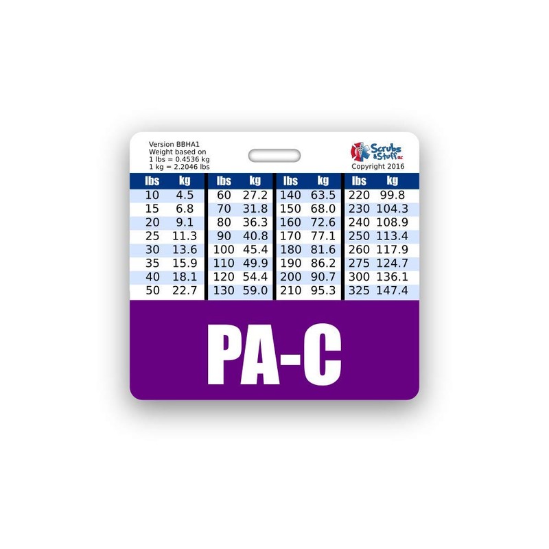 PA-C Badge Buddy Horizontal w/Height & Weight Conversion Charts (Standard, Purple)