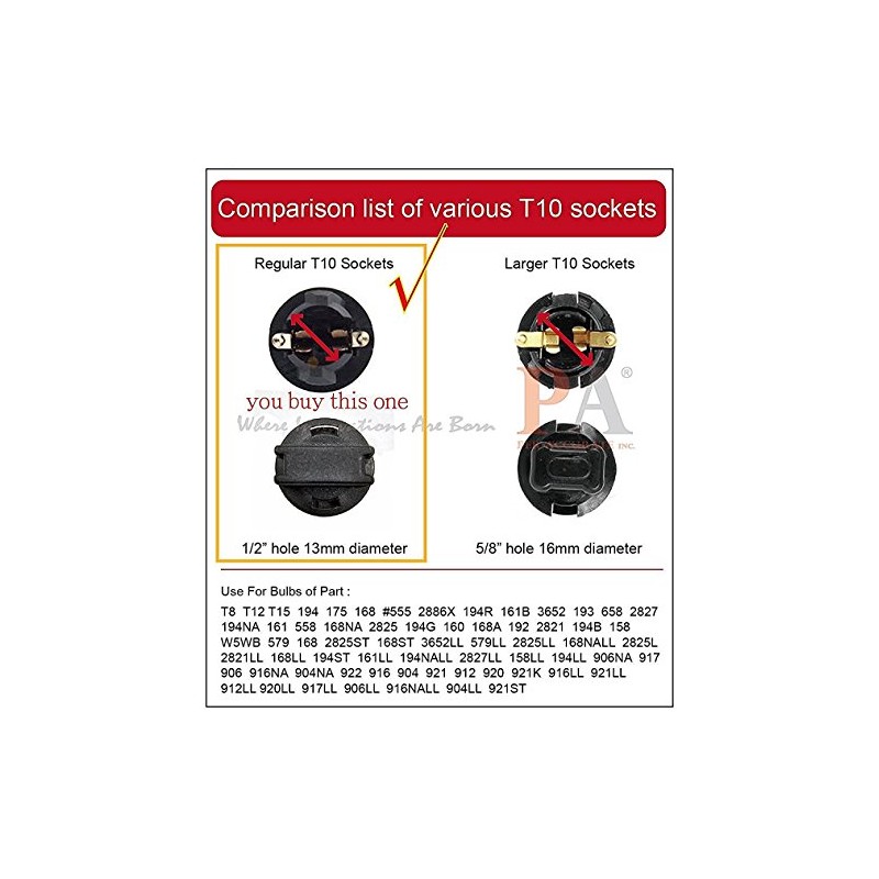 PA LED 10 PCS 194 T10 Pinball Machine Light Bulb Socket, T10 Base, Twist Lock, Wedge Instrument Base, No Batteries Required, For Teens & Adults