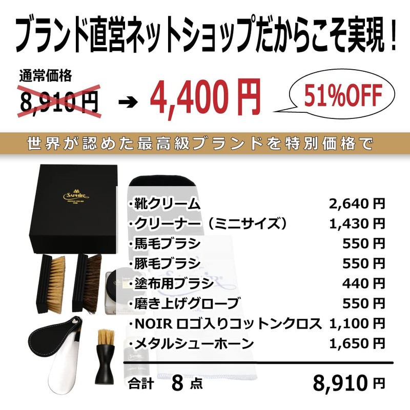 - サフィール公式ショップだからこそ実現できた、内容盛り沢山の特別シューケアセットです。