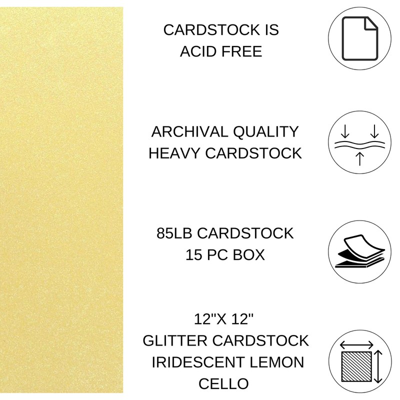 - Paper Accents glitter cardstock in 12x12 in the color Iridescent Lemon Cello. This cardstock paper is handy for scrapbooking, DIY greeting cards, decoupage projects, and paper crafting. Each 12” x 12” paper sheet is ideal background paper for scrapbook albums.