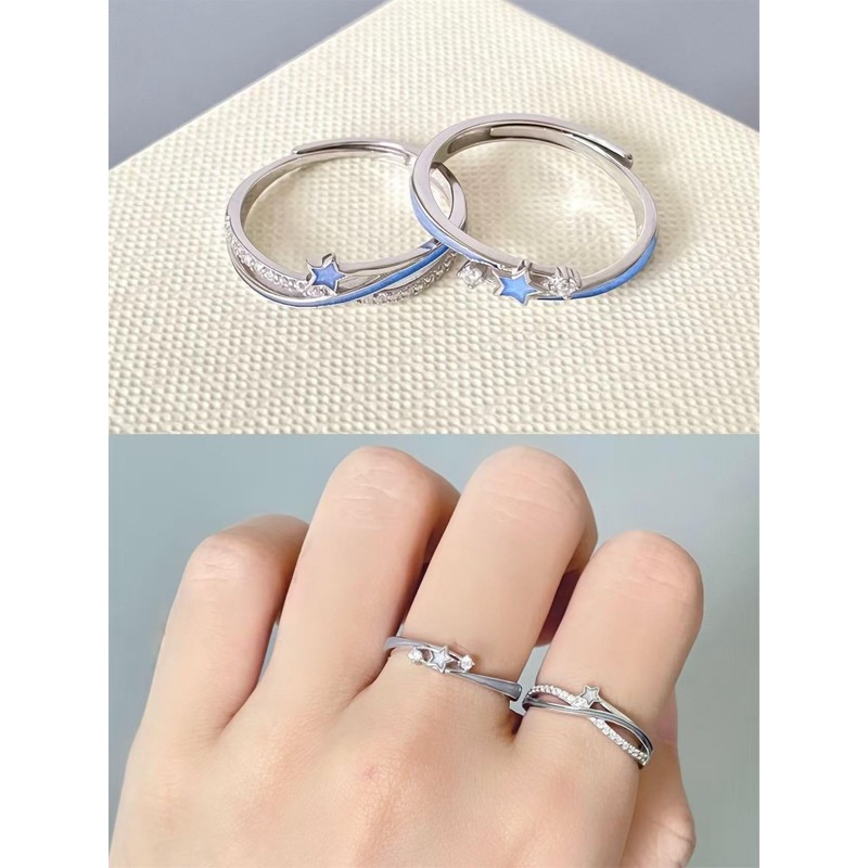 Paar Ring S925 Sterling Silber Männer Und Frauen Paar Mit Sternen Und Cubic Zirconia Glow-In-The-Dark Open End Ringe Geeignet Als Valentinstag/Hochzeit Geschenk