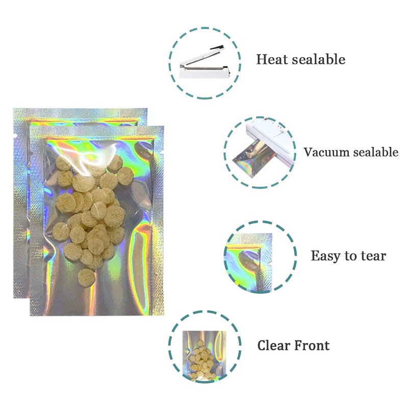 PABCK 100 Pieces 2.4x3.5 inch (Inside Size 2x3.1 inch) Front Clear Heat Seal Bags Open Packet Aluminum Foil Pouch for Packaging Candy Food Storage with Tear Notches