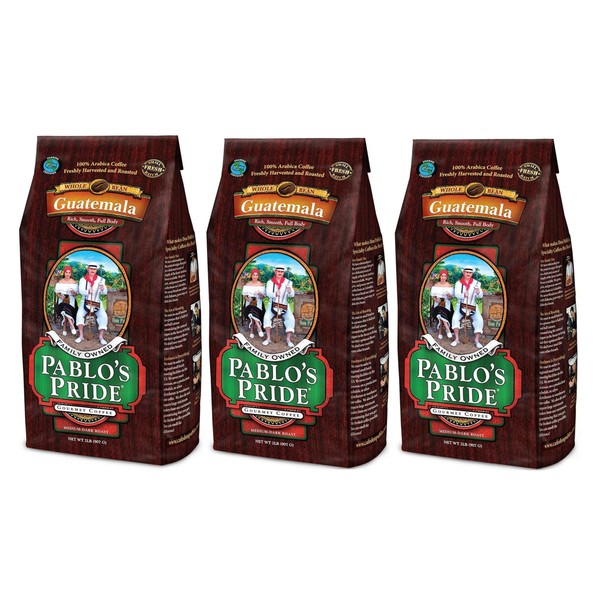 Pablo's Pride Guatemalan Whole Bean Coffee, Medium-Dark Roast, 32 Oz- Pack of 3