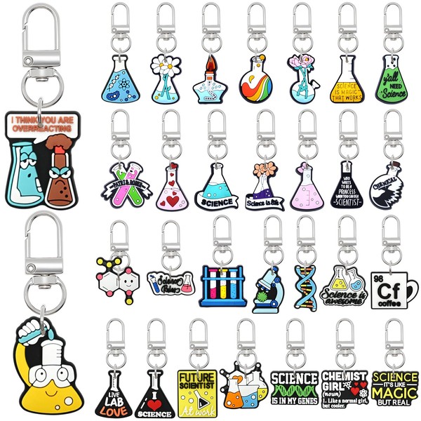 Pabucle Cute Keychains Bulk,30 PCS Different Science Key Chain Accessories for Keys Backpack Bag Charm Gifts for Party Favors