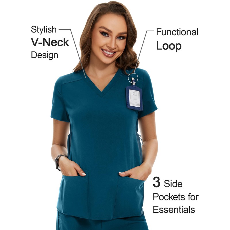 - ADJUSTABLE SIDE KNIT PANELS: The scrub top has adjustable side knit panels for you to adjust in different stages. Whether you need a looser or snugger fit, these panels ensure that your top always fits you perfectly, allowing you to focus on your work without distractions.