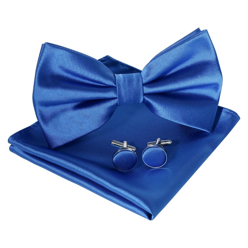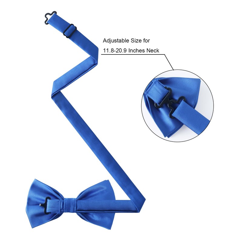 - Tamaño del juego de corbatas: pajarita formal: 12 x 6 cm, es fácilmente ajustable para adaptarse a tamaños de cuello de 12 a 21 pulgadas. Pañuelo/bolsillo cuadrado: 21 x 21 cm. El paquete incluye: 1 pajarita preatada de color sólido + 1 cuadrado de bolsillo + 2 gemelos + 1 caja de regalo.