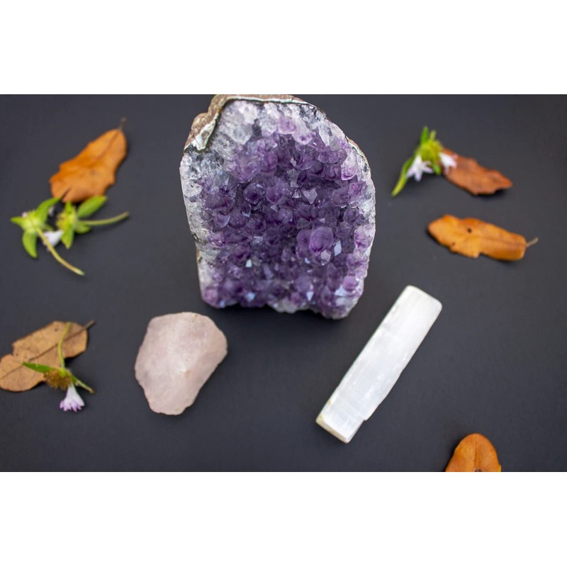 - ✅ High Quality Amethyst Cluster with Cut Base, Small Selenite stick, and Rose Quartz are carefully assembled and packaged in a sturdy mailer box for gift-giving.