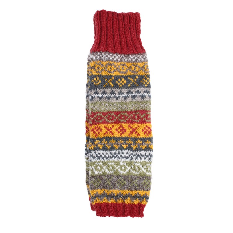 Pachamama Women 100% Wool Legwarmer Handknitted Fair Isle Pattern Rust Multicoloured Regular Fit Handmade Extra Warm