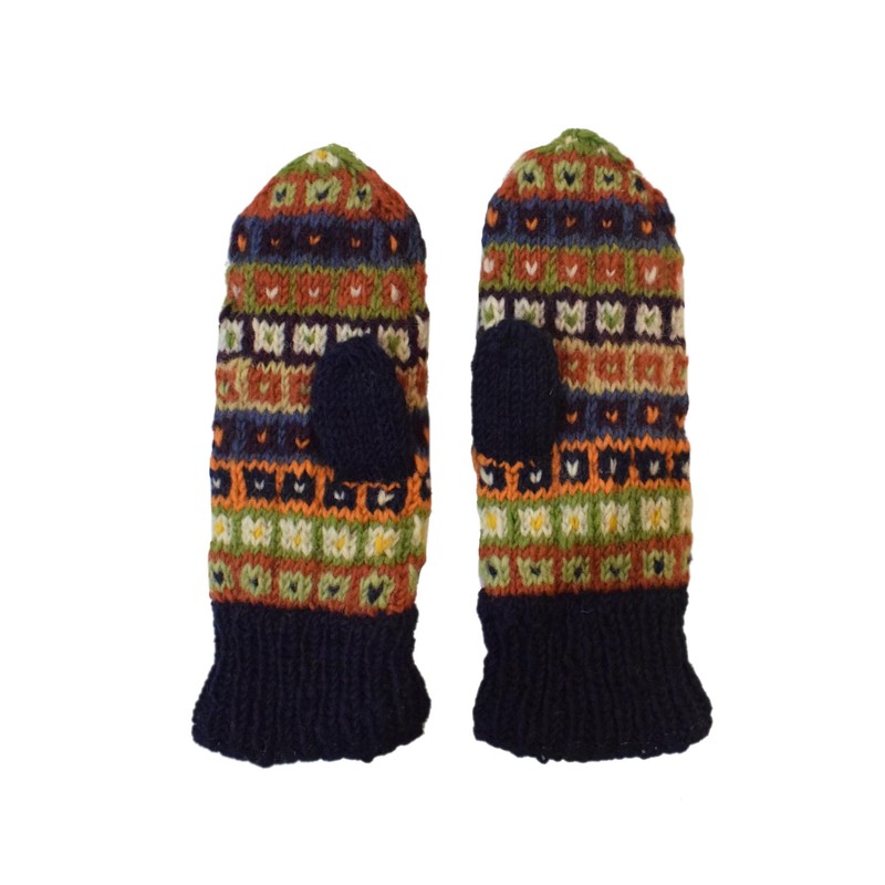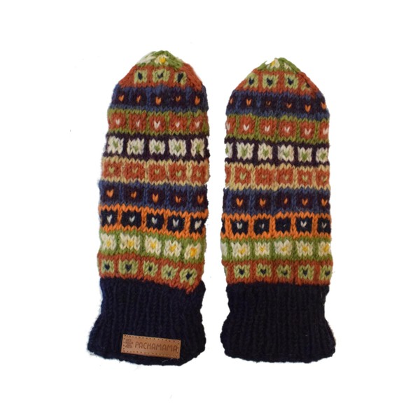 Pachamama Women Wool Mittens Fleece Lined Handknitted Flecked Stripe Blue Multicoloured One-Size Handmade Extra Warm Fair Trade