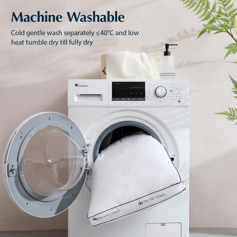 Care Instructions: Revive your pillow by following the enclosed care card. Machine wash cold (<30°C/85°F) and tumble dry low (max 60°C/140°F) to restore loft. Reinforced construction withstands repeated laundering.