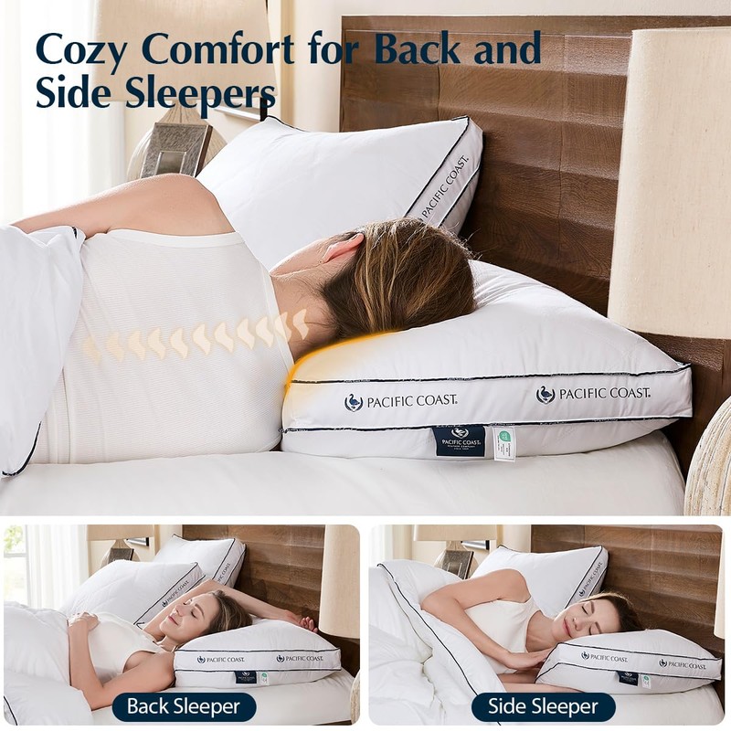 - Certified Safety & Sustainability: Pacific Coast Feather pillows hold RDS and OEKO-TEX certifications. Our multi-stage washed fill and premium materials deliver inherent low-allergenic safety, while our compressed packaging actively advances environmental sustainability.