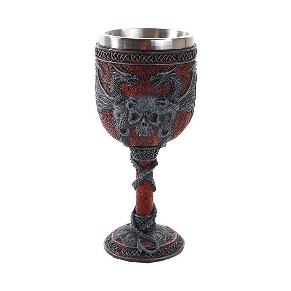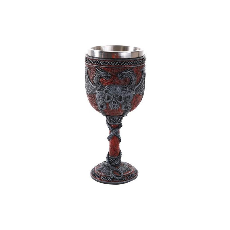 Pacific Giftware Double Dragon Wing Skull Goblet Wine Cup 7 inch