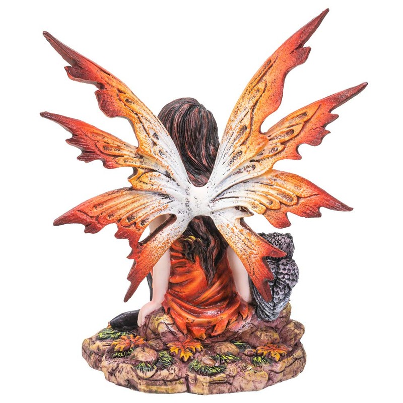 Pacific Giftware Fairyland Red Winged Fairy with Baby Owl Statue Figurine