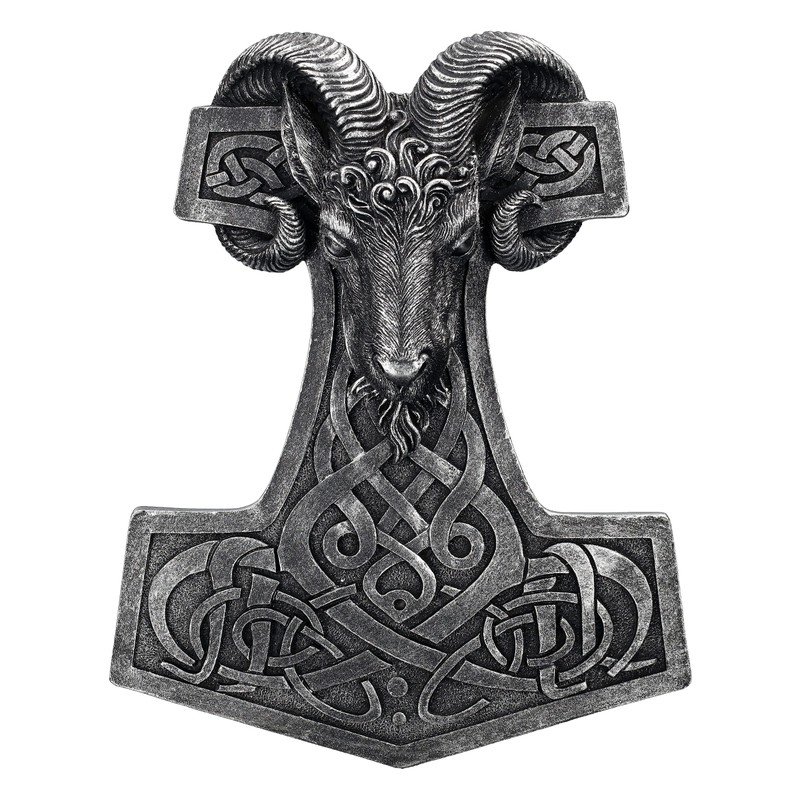 Pacific Giftware Thor's Hammer with Aries Head Wall Relief Viking Wall Decoration Figure