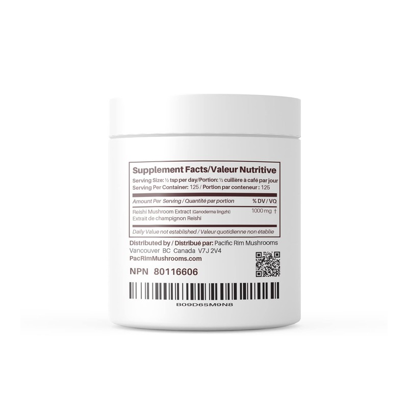 Pacific Rim Mushrooms Reishi Supplement Powder | High Potency 10:1 extract | 1000 mg per serving | Immunity + Stress + Sleep | 125 Grams / 125 Servings