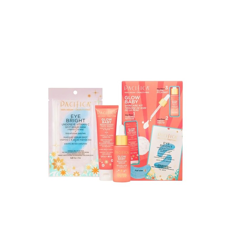 🌟 💄 Pacifica Beauty | Glow Baby Vitamin C Trial + Value Kit | 3-Piece Skin Care Gift Set | Travel Friendly | Brightening Face Serum, Face Wash/Cleanser, Under Eye Patches | Glycolic Acid, AHA | Vegan 💄 🌟
