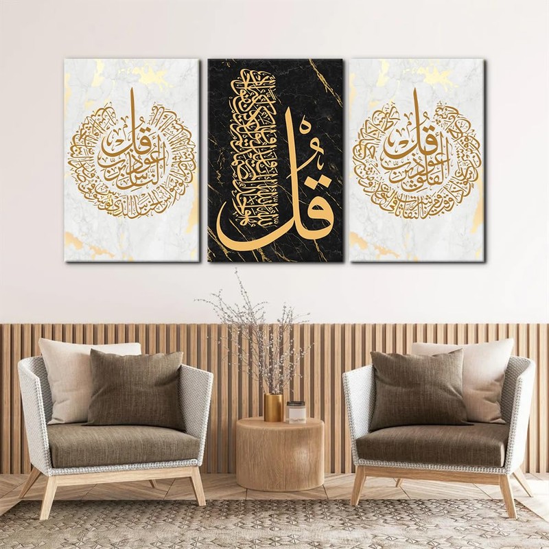 Pacimo 3 Pieces Islamic Canvas Wall Art Ayatul Kursi Allah Name Muhammad Pictures Prints on Canvas Arabic Calligraphy Muslim Art Poster for Home Decor Stretch and Framed Ready to Hang - 16"x24"x3