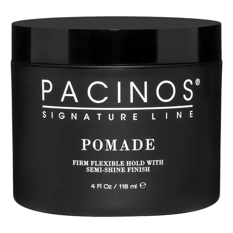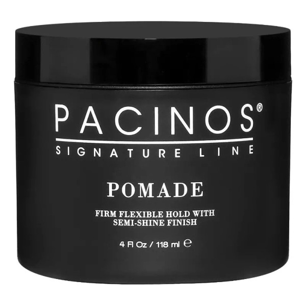 Pacinos Pomade -Firm Hold contiene cera suave y aceite que mejora un peinado de aspecto natural.