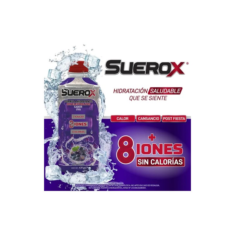 Pack 12 bebida hidratante Suerox 8 Iones sabor uva 630mL