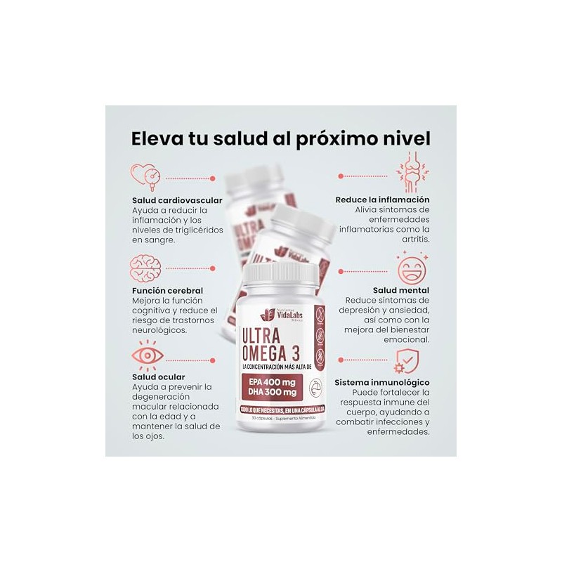 NUTRIENTS VIDALABS - Pack 3 Frascos Ultra Omega 3 Nutrientes Vidalabs México Aceite de pescado Premium Alta Concentración 400 mg EPA Y 300 mg DHA, Apoyo A La Salud Del Corazón, Las Articulaciones Y Cerebro 30 Cápsulas Blandas (3). 🚀 Producto más vendido con miles de clientes satisfechos. Construcción robusta y atención al detalle. 💎 Calidad superior certificada. Ideal para quienes buscan lo mejor en calidad y estilo. Producto auténtico con satisfacción total asegurada. ¡No te quedes sin el tuyo y aprovecha esta oportunidad única!