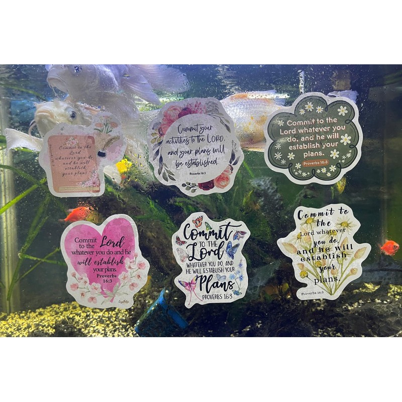 - DESIGN VARIETY: Set of 6 unique Christian sticker designs featuring Proverbs 16:3 scripture with floral, butterfly, and decorative elements