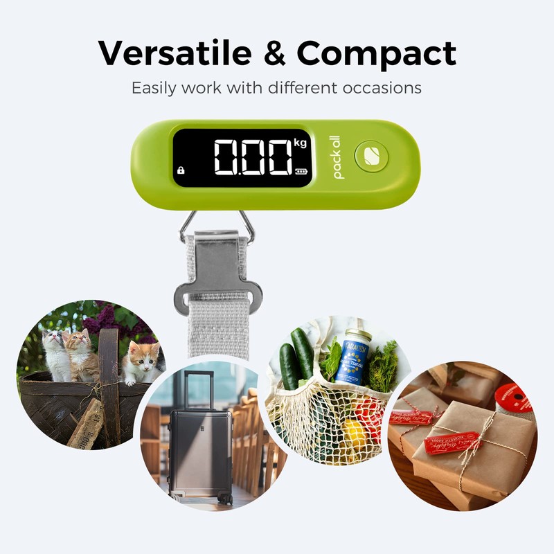 pack all 110 Lbs Luggage Scale, Digital Handheld Baggage Scale, Travel Suitcase Weight Scale with LCD Display, Battery Included, Apple Green