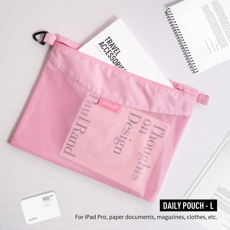 pack all Water-Resistant Material Zipper Pouch, Mesh Zipper Bags for Storage, Travel, Office (Pink, Large)