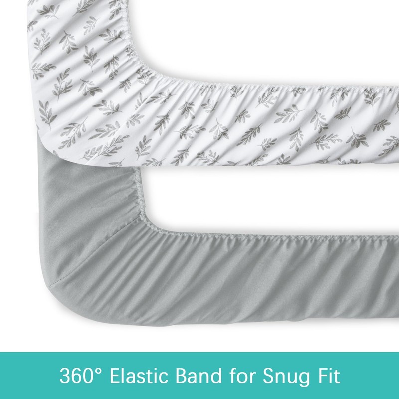 Pack and Play Fitted Sheet(38" x 24"), 4 Pack for Playard/Mini Crib Mattresses, Mini Crib Sheets, Breathable & Soft Polyester, Grey Leaf