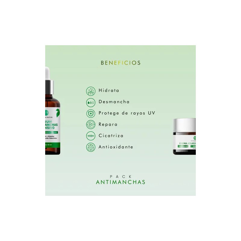 Pack Antimanchas Facial Pureza Natur | Serum + Crema FPS 30 | Aclarante Intensivo Antiedad para Todo Tipo de Piel