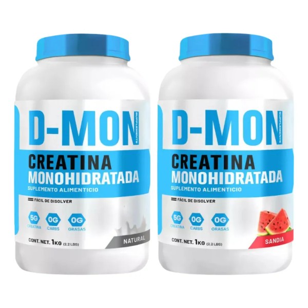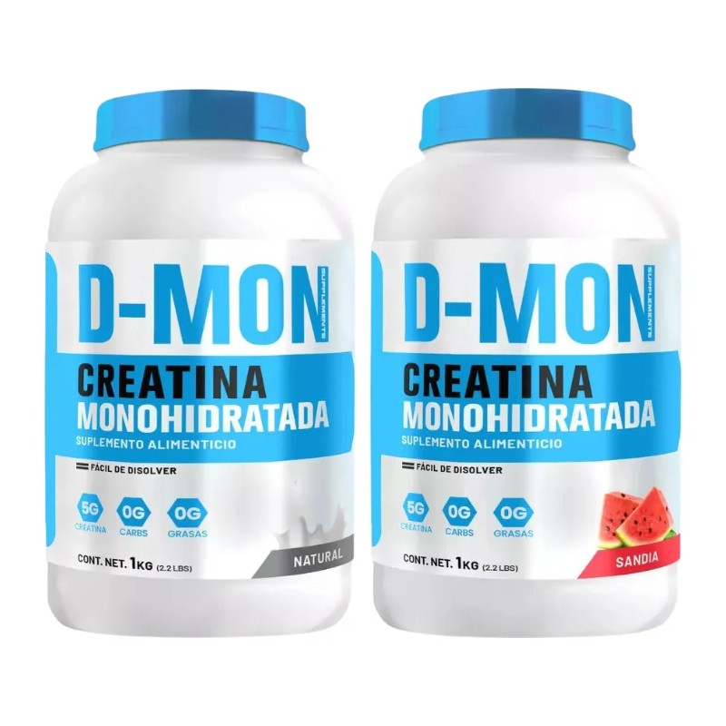 pack duo creatina monohidratada, creatina D-mon alta pureza 1kg, creatina micronizada para deportistas, suplemento creatina para fuerza y recuperación, creatina pura para gym, creatina 2kg pack doble