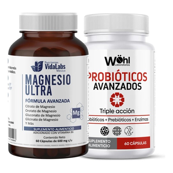 Pack Magnesio Ultra Nutrientes Vidalabs México + Probióticos Avanzados Laboratorios Wöhl Sabor Sin Sabor