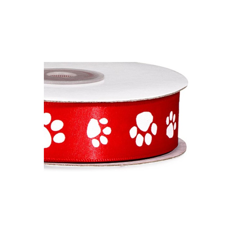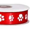 Pack of 1, Red Paw Print Satin Ribbon Single Faced Satin 7/8" X 25 Yards For ...