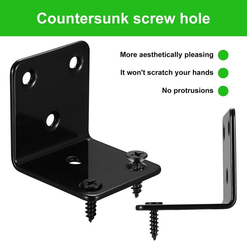 EASY INSTALLATION Equipped with mounting screws. Simply use a drill or screwdriver to securely attach the angle plate 90 degrees to the required items. The screw holes are equipped with countersunk holes, making the installation more stable, convenient, beautiful and safe.