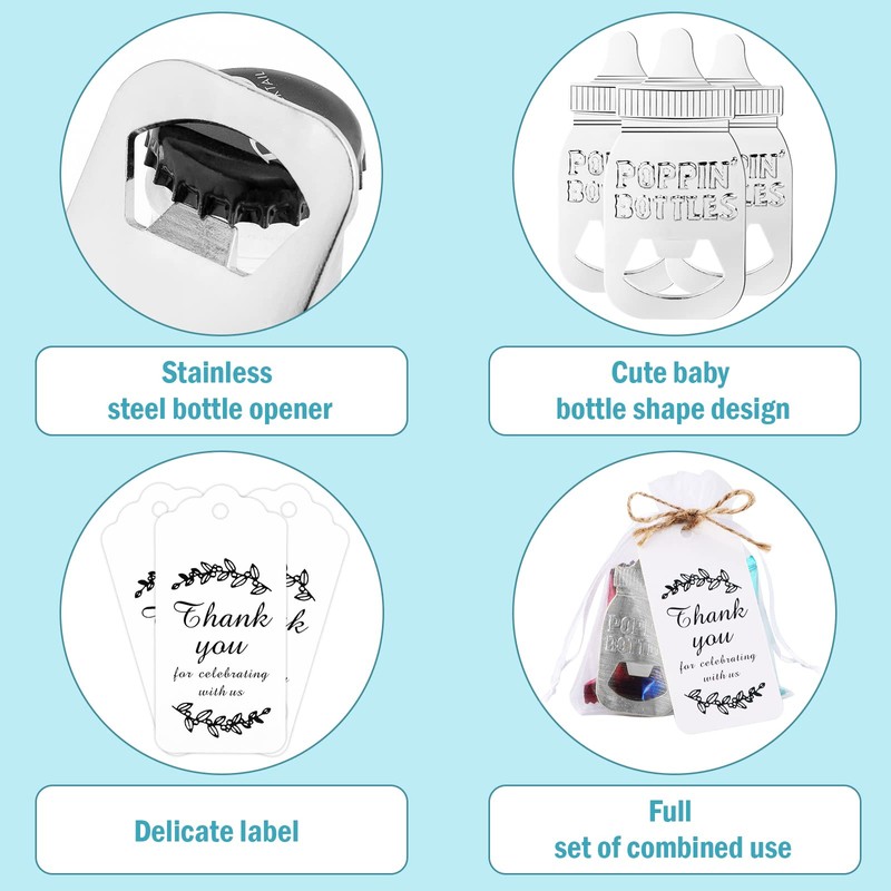 - Multifunctional: these baby bottle tags are not only gorgeous gifts, but also practical bottle opener, can be used as a tool for beer or soda at parties or in daily life and as decoration and souvenir for boys and girls baby shower, bridal shower, birthday and wedding parties.