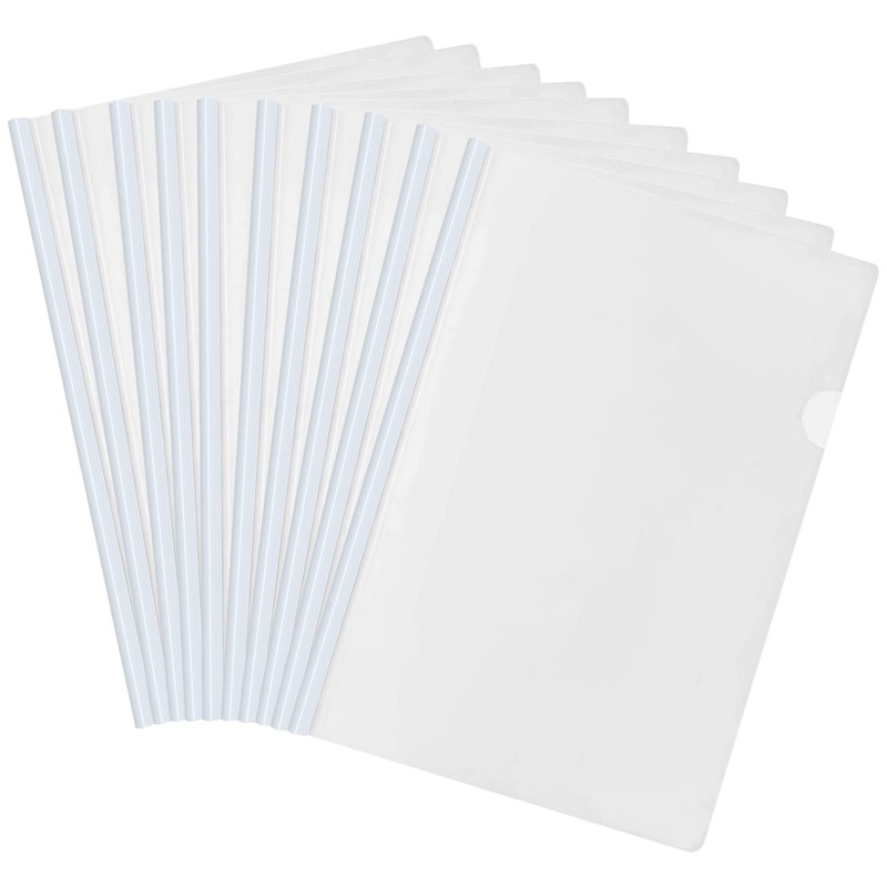 Pack of 10 Clear A4 Sliding Bar Binder, File Folder Binder, Plastic Report Covers, Sliding Folder for Home, School, Office, Documents, Classification (White)