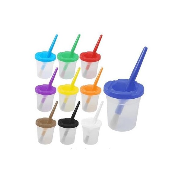 Pack of 10 Colour Cups for Children, Spill Proof Learning Colour Cups for Young Artists